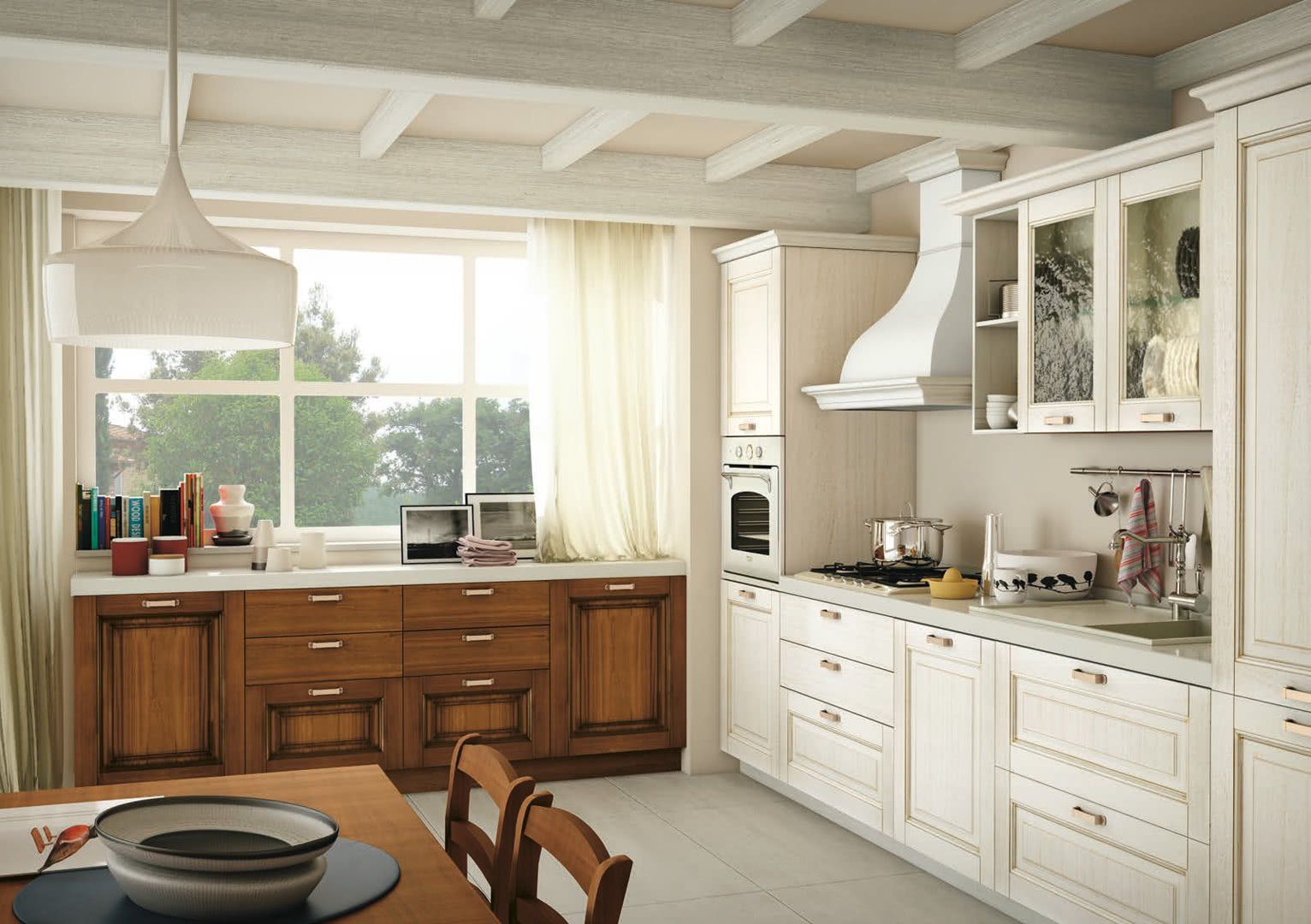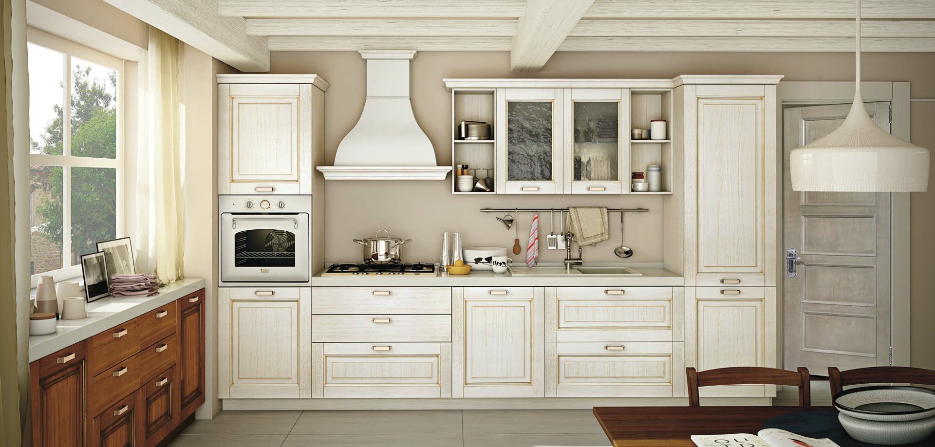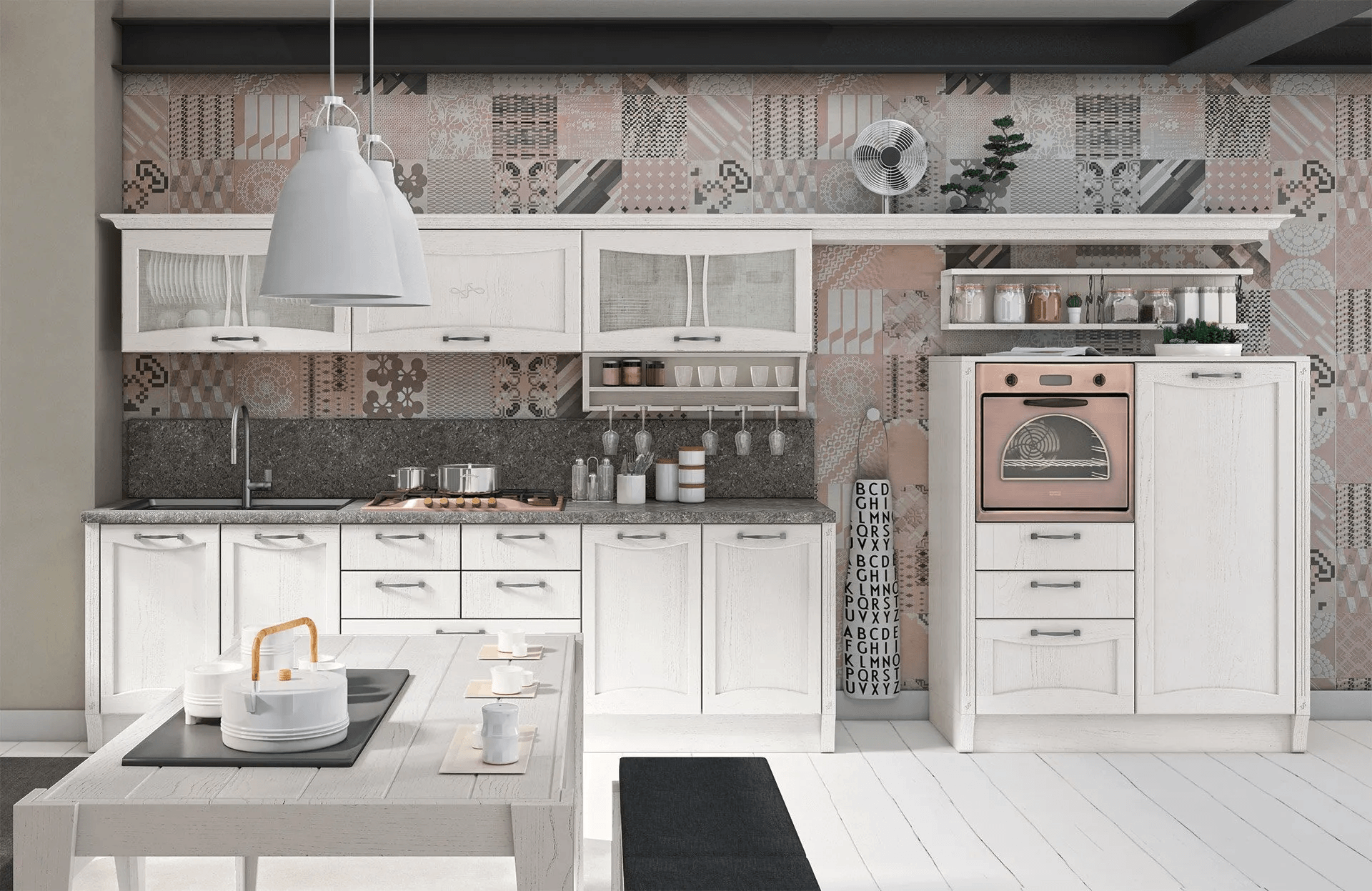 In Aurea la classicità sta nella composizione, nei colori, nelle finiture. È un piccolo mondo perfetto. Inoltre con le ante e la cappa nelle finiture lavagna puoi memorizzare con parole e frasi tutto quello che ti viene in mente. Ecco la cucina dove puoi preparare, mangiare, conversare... e scrivere!